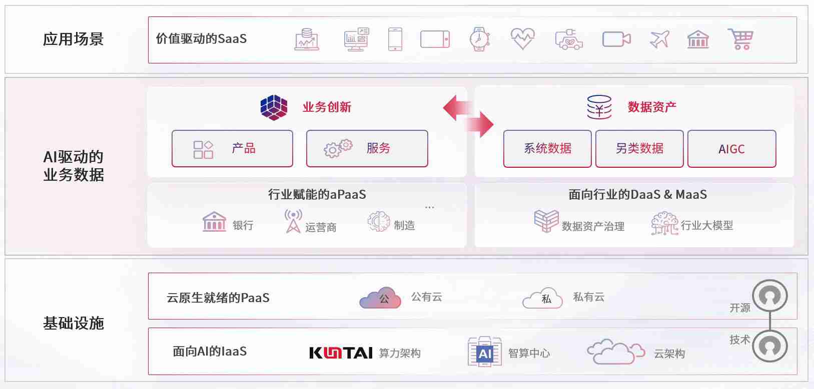 数字时代,,,围绕企业数字化转型的关键要素,,,bodog数码开创性的提出数云融合战略和技术体系框架,,,着力在云原生、、数字原生、、AI原生和信创产业上架构产品和服务能力,,,,为处在不同数字化转型阶段的快消零售、、汽车、、、金融、、医疗、、政企、、教育、、、运营商等行业客户提供泛在的敏捷IT能力和融合的数据驱动能力,,,,构建跨界融合创新的数字业务场景和新业务模式,,,,助力企业级客户建立面向未来的核心能力和竞争优势,,全面推动社会的数字化、、智能化转型升级。。。。